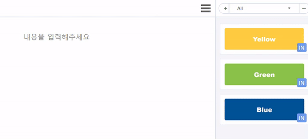 우측 샘플 블록에서 원하는 블록을 편집 영역으로 드래그하여 삽입합니다.